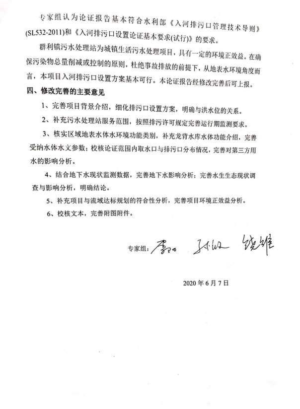 5.《遂宁市城镇污水处理设施全市统一打包建设运营PPP项目(群力乡污水处理站)入河排污口设置论证报告》专家评审意见