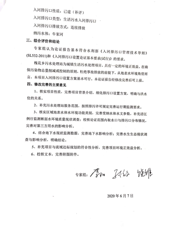 6.《遂宁市城镇污水处理设施全市统一打包建设运营PPP项目(槐花乡污水处理站)入河排污口设置论证报告》专家评审意见