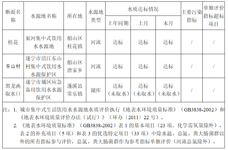 本月遂宁市城区集中式生活饮用水水源地水质情况见表3。