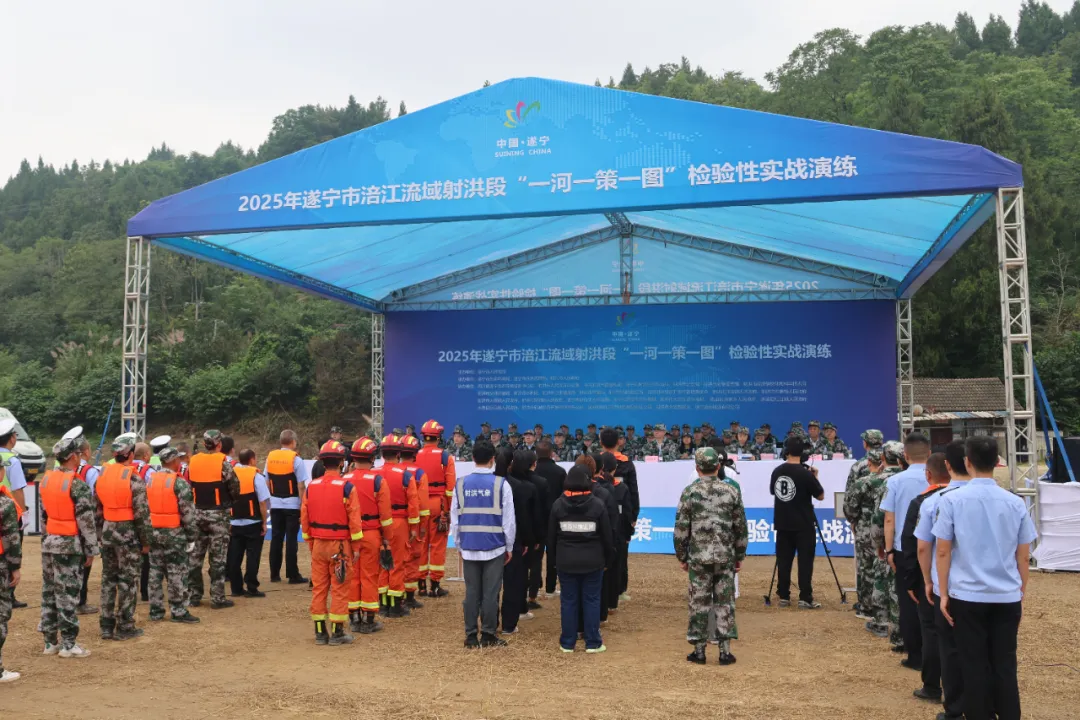10月16日,由遂宁市人民政府主办,遂宁市生态环境局、遂宁市应急管理局、射洪市人民政府承办,多部门多单位参加的2025年遂宁市涪江流域射洪段“一河一策一图”检验性实战演练在射洪市圆满举行。