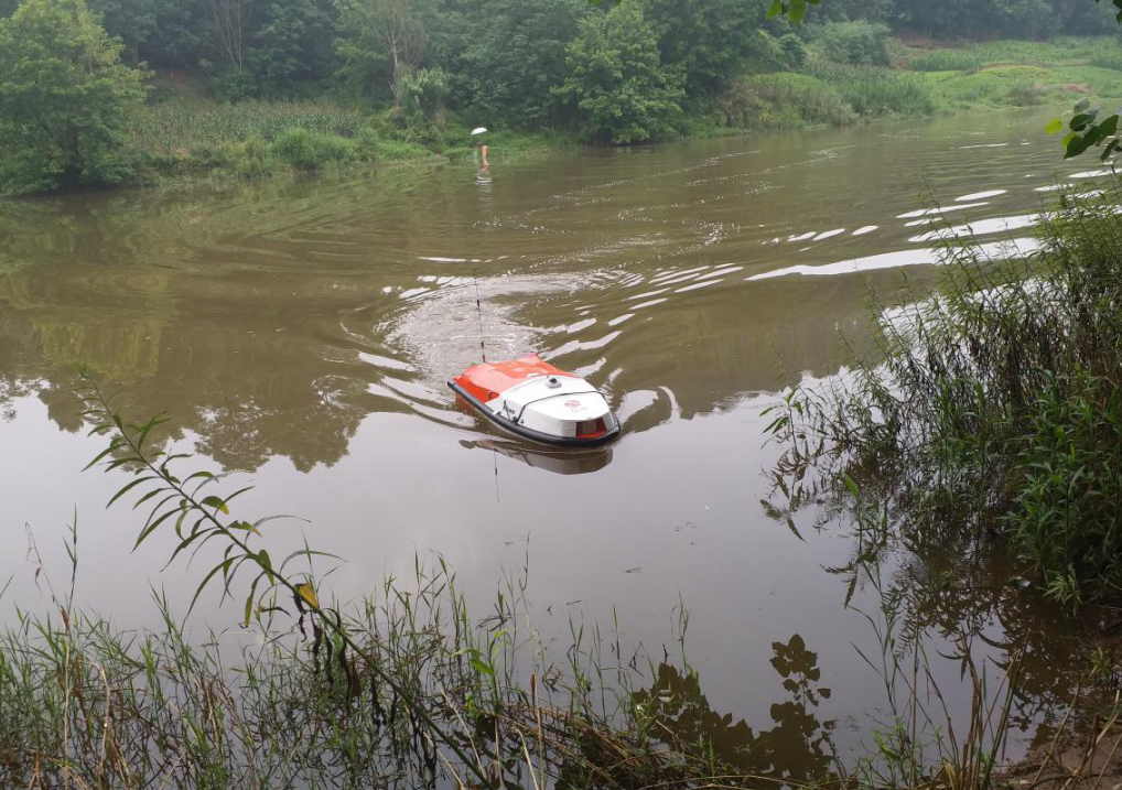 7月7日,四川省遂宁生态环境监测中心站站长王璞组织课题团队,采用远程操控4G无人巡河船方式首次"试水郪江","借眼"水质自动监测无人船,进行人机结合、岸上岸下、立体交叉巡河的新方式开展水环境调查工作。