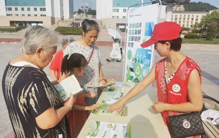 8月15日上午,在大英县发展改革局联合大英县生态环境局开展的2024年全国生态日主题宣传活动中,工作人员通过设置宣传展板、发放宣传资料、组织志愿者宣讲等方式,引导市民践行节水节电、垃圾分类、绿色出行、循环利用等绿色低碳生活方式,倡导大家参与生态环境保护。