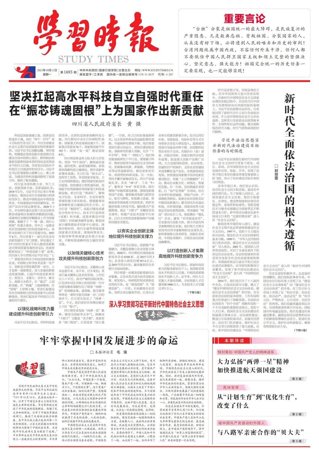 黄强省长在《学习时报》发表署名文章: 坚决扛起高水平科技自立自强时代重任 在“振芯铸魂固根”上为国家作出新贡献
