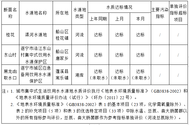 本月遂宁市城区集中式生活饮用水水源地水质情况见表3。