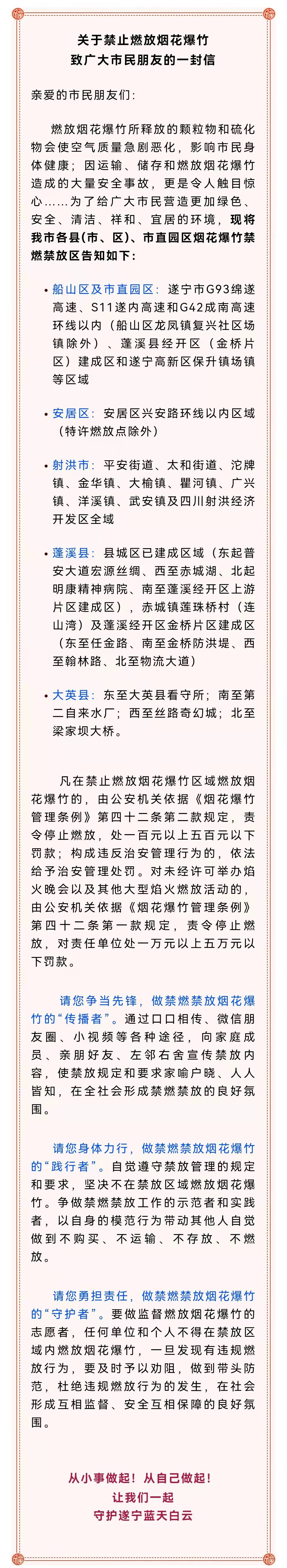关于禁止燃放烟花爆竹致广大市民朋友的一封信