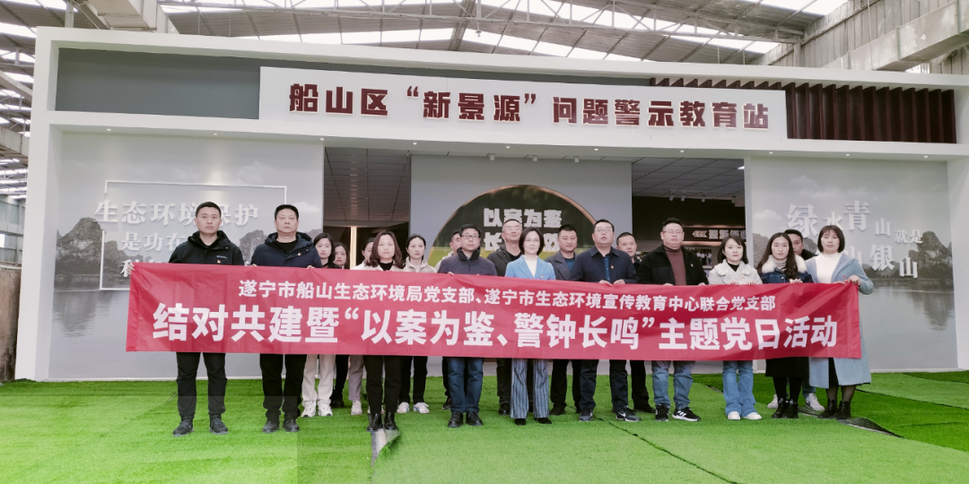 为从严从实抓好作风建设,树牢党员干部廉洁从政意识,推进全面从严治党向纵深发展。2月28日下午,遂宁市船山生态环境局党支部和遂宁市生态环境宣传教育中心联合党支部开展结对共建暨“以案为鉴、警钟长鸣”主题党日活动,组织党员干部到老池镇书院村“新景源”问题警示教育站参观学习。