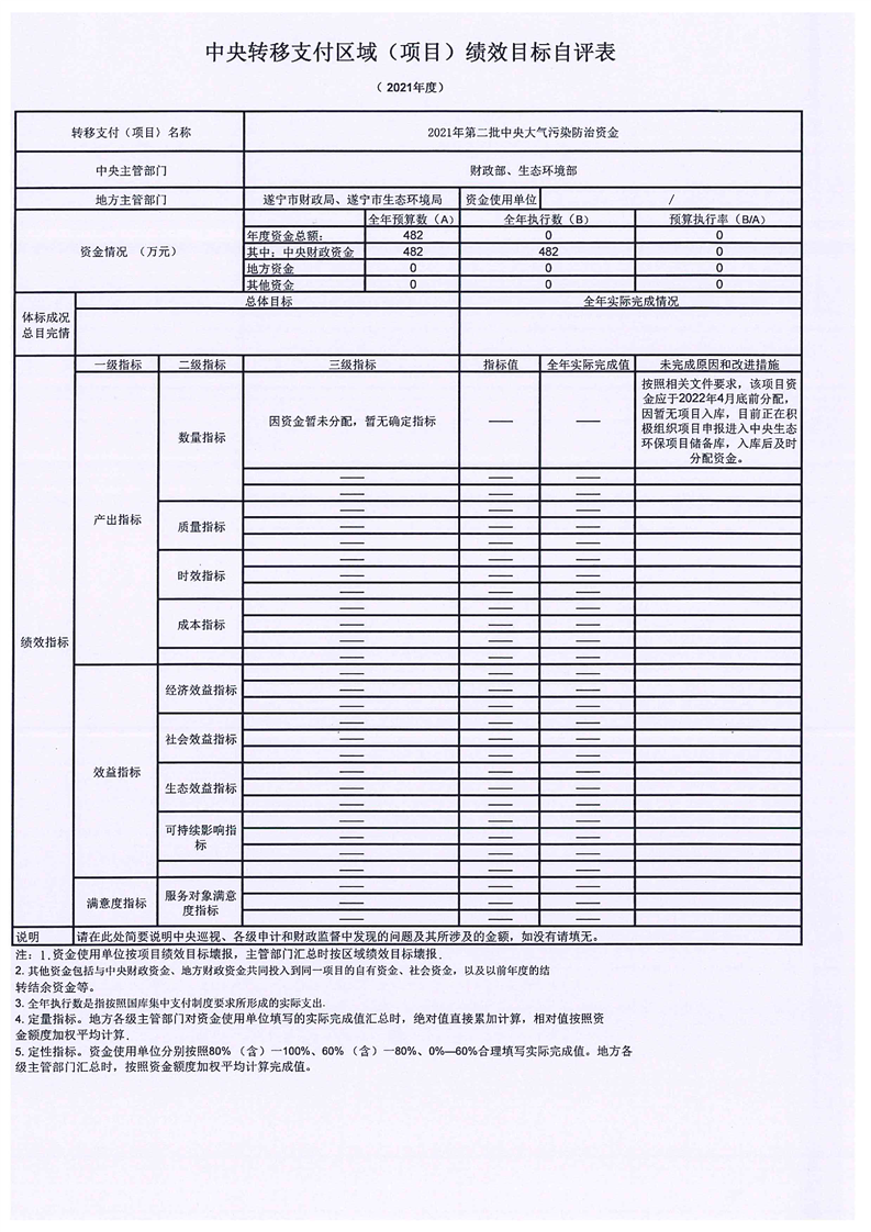 中央转移支付区域(项目)绩效目标自评表-2021年中央大气污染防治资金