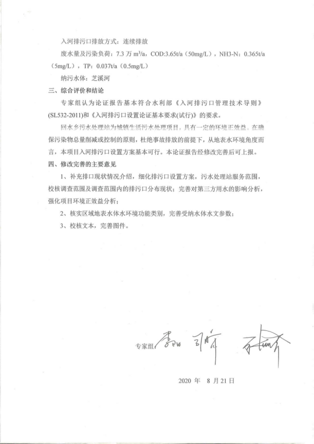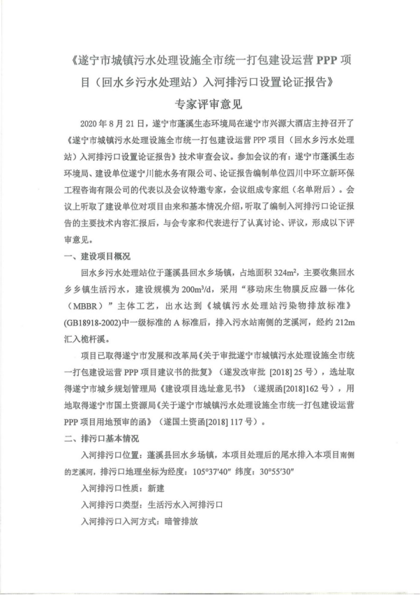 附件:1.《遂宁市城镇污水处理设施全市统一打包建设运营PPP项目(回水乡污水处理站)入河排污口设置论证报告》专家评审意见