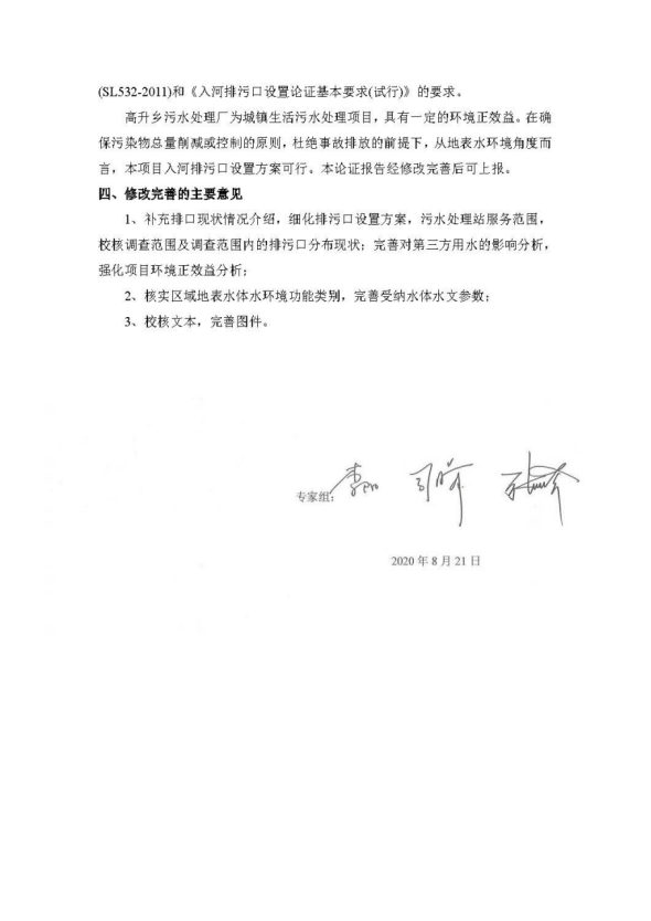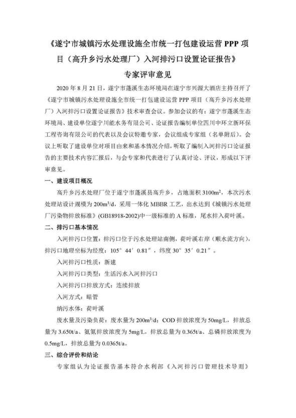 2.《遂宁市城镇污水处理设施全市统一打包建设运营PPP项目(高升乡污水处理厂)入河排污口设置论证报告》专家评审意见