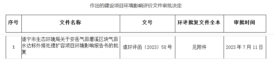 根据建设项目环境影响评价审批程序的有关规定,经审查,我局对1个建设项目环境影响评价文件作出审批决定。现将作出的审批决定情况予以公告,公告期为从2023年7月11日起7个工作日。