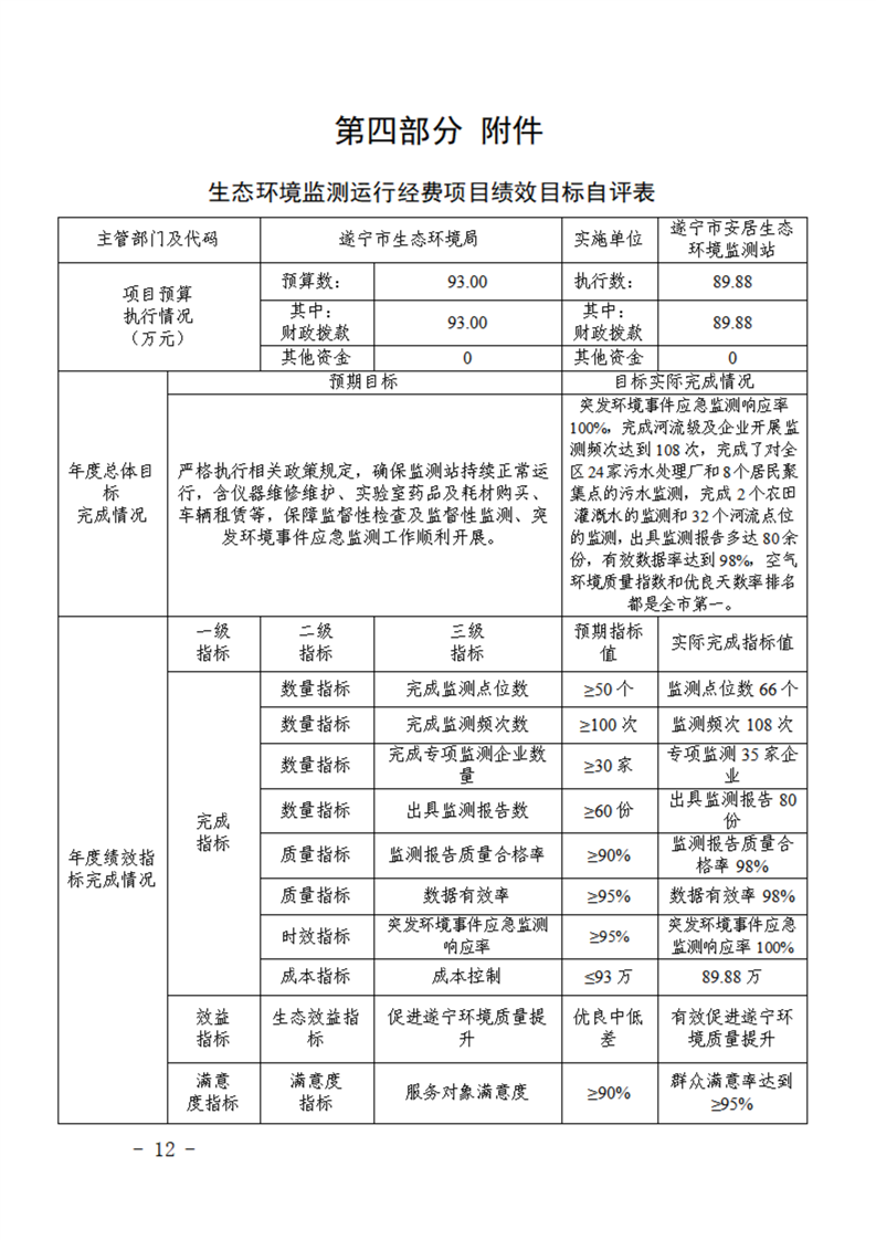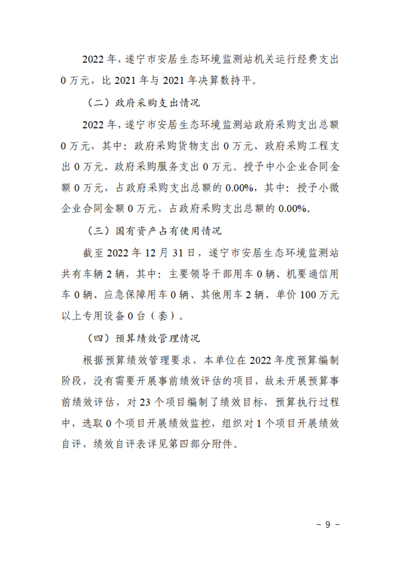 2022年度遂宁市安居生态环境监测站单位决算