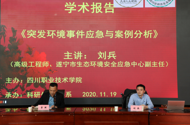 11月19日下午,市生态环境安全应急中心副主任、高级工程师刘兵同志受邀到四川职业技术学院学术报告厅,做《突发环境事件应急与案例分析》环境安全应急专题讲座。