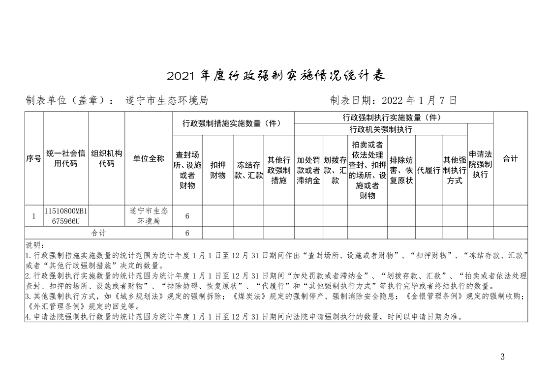 遂宁市生态环境局2021年度行政执法和行政执法监督情况公示