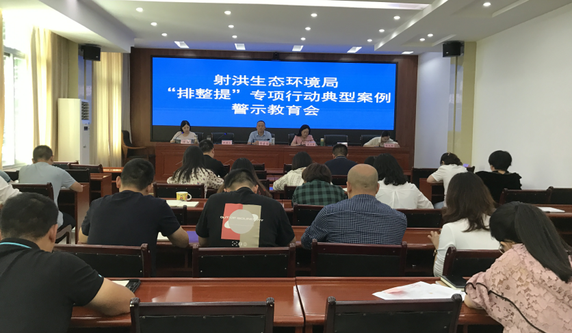 为推动“问题大排查、作风大整治、工作大提升”专项行动扎实有效开展,9月28日,射洪生态环境局组织召开“排整提”专项行动专题学习暨典型案例警示教育会,全局干部职工参加会议。