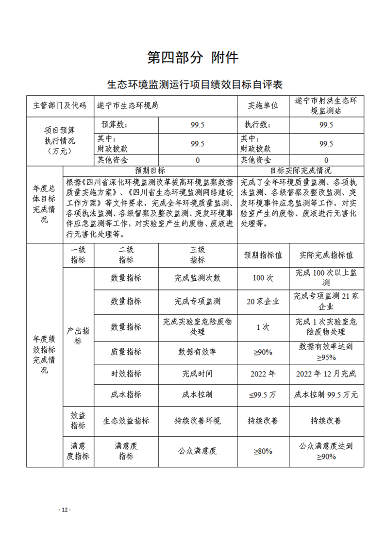 2022年度遂宁市射洪生态环境监测站单位决算