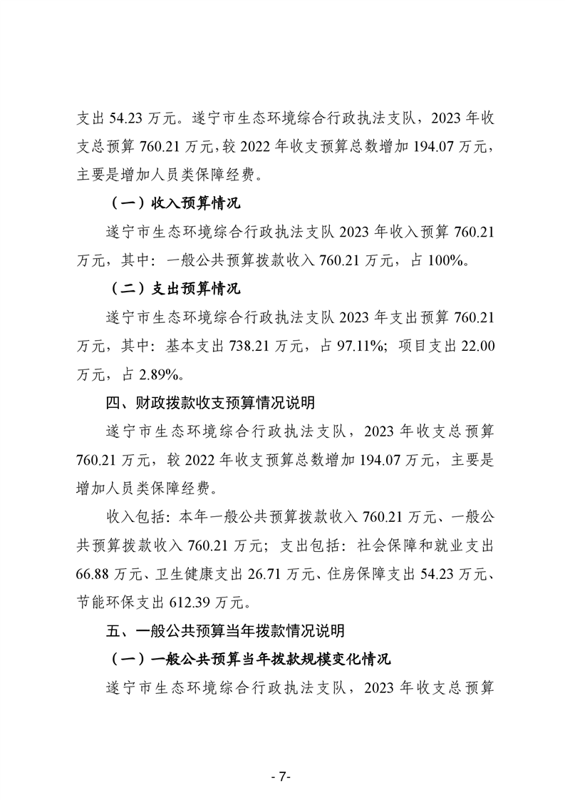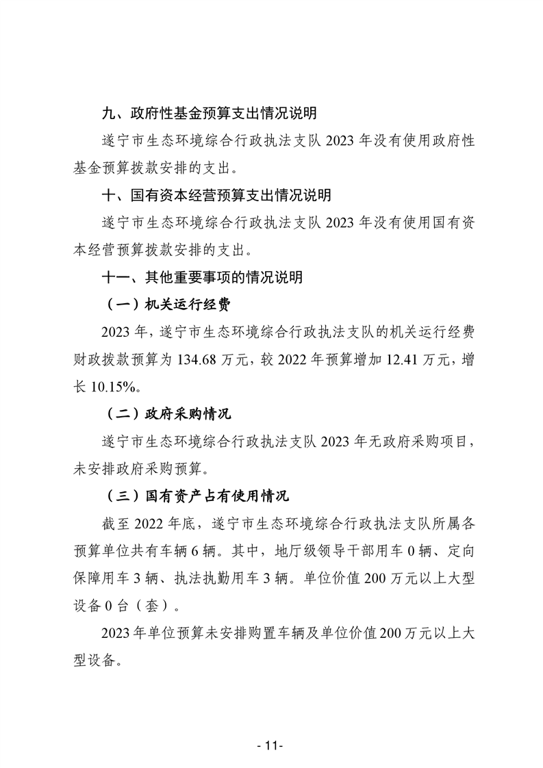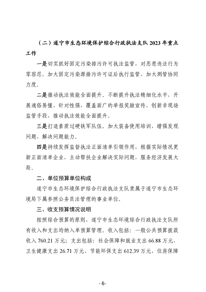 遂宁市生态环境保护综合行政执法支队2023年单位预算