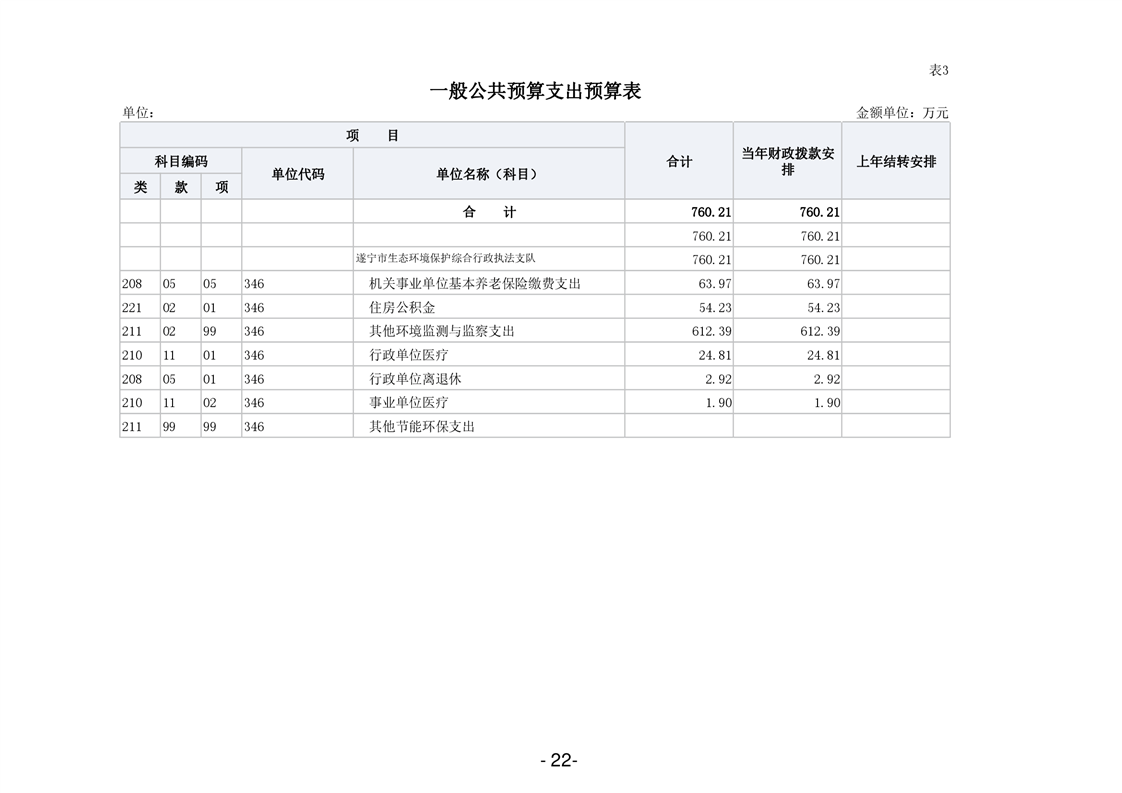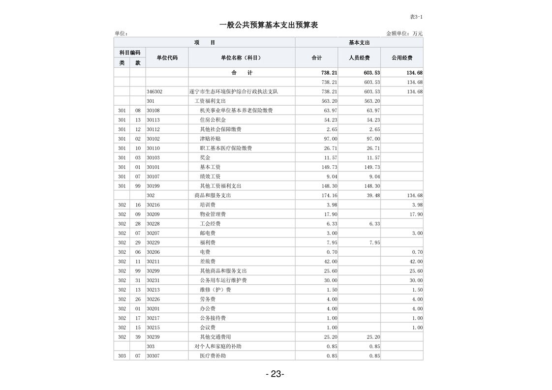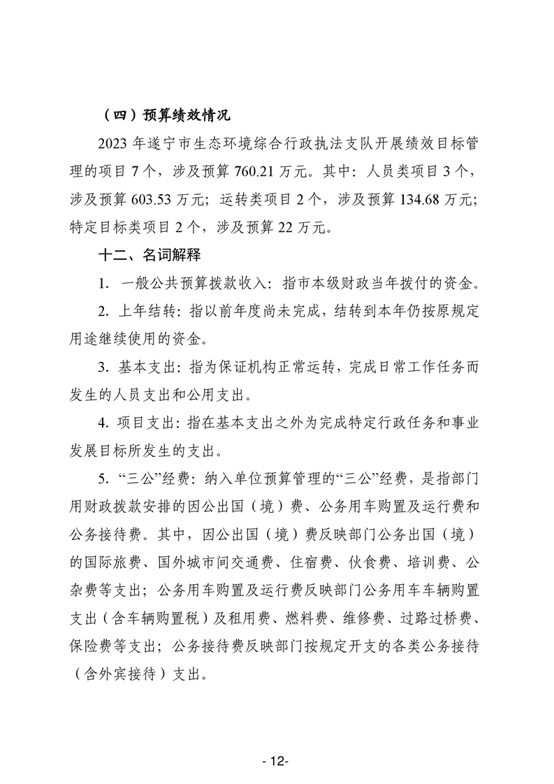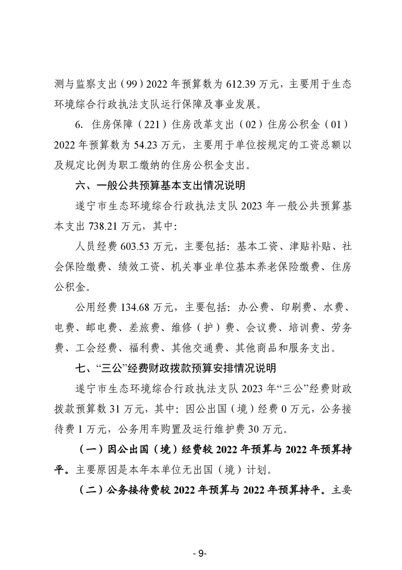 遂宁市生态环境保护综合行政执法支队2023年单位预算