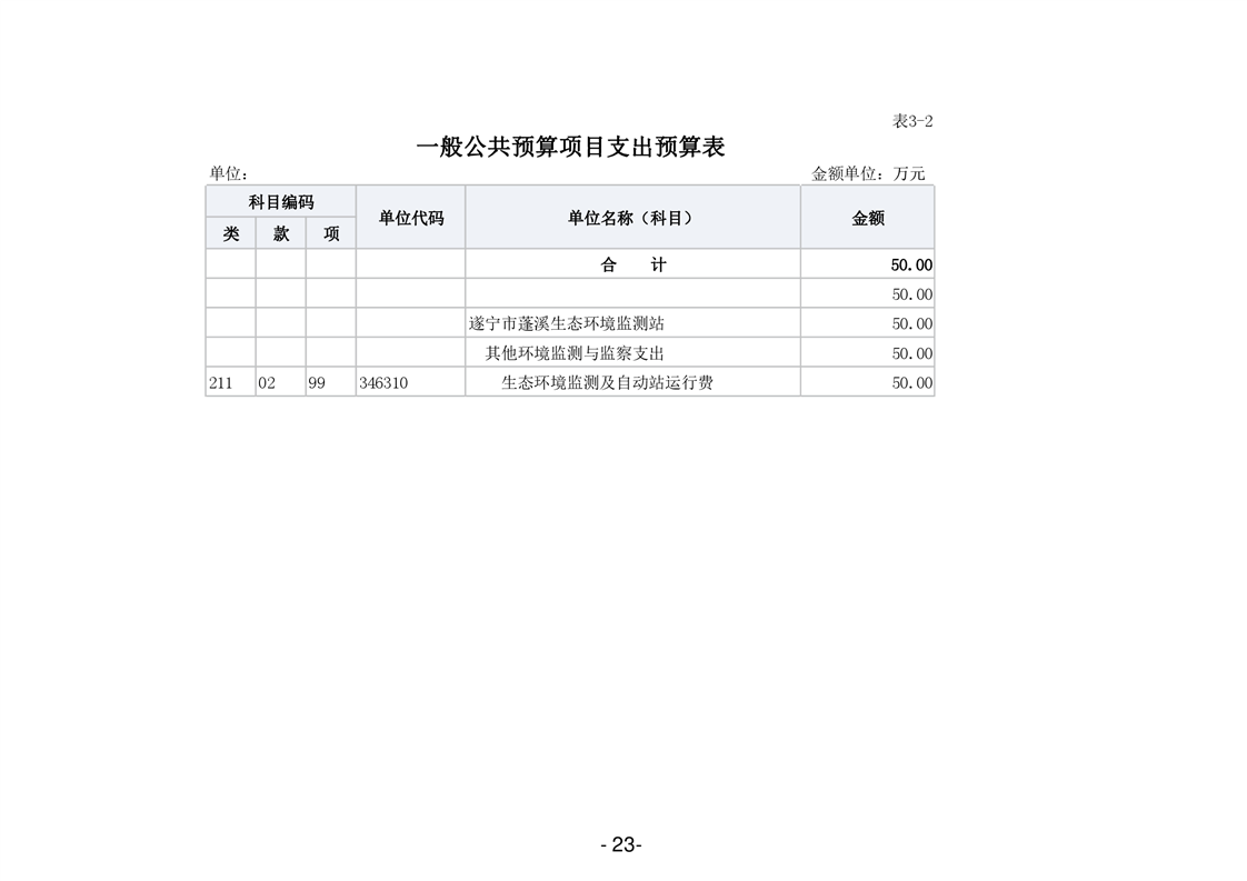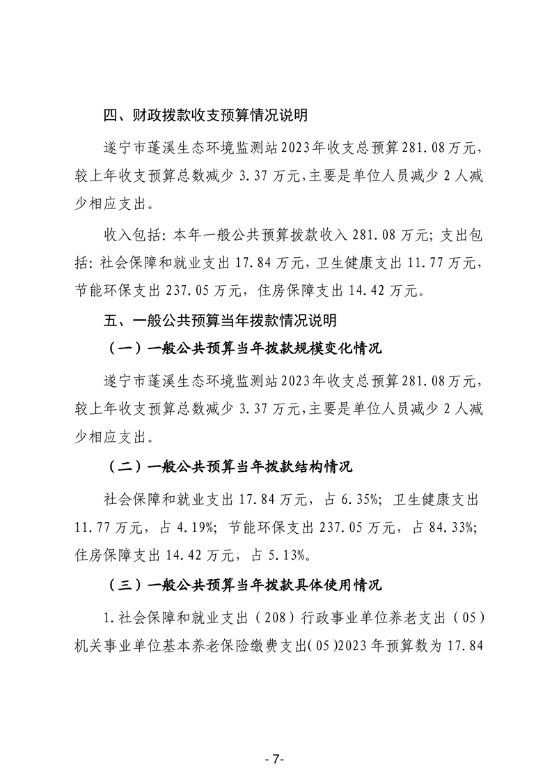 遂宁市蓬溪生态环境监测站2023年单位预算