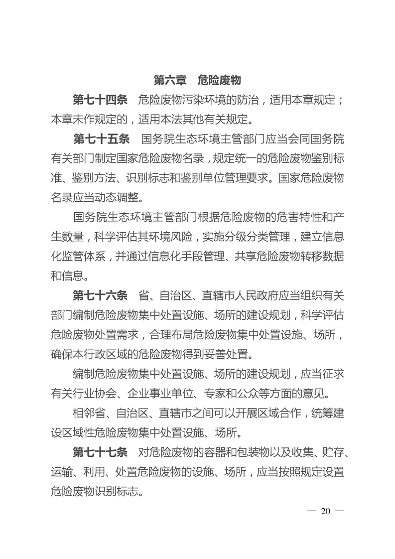 中华人民共和国固体废物污染环境防治法(2020年修订)