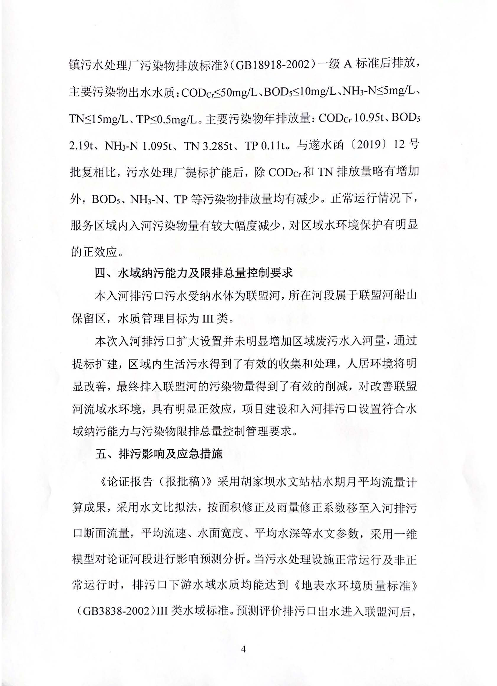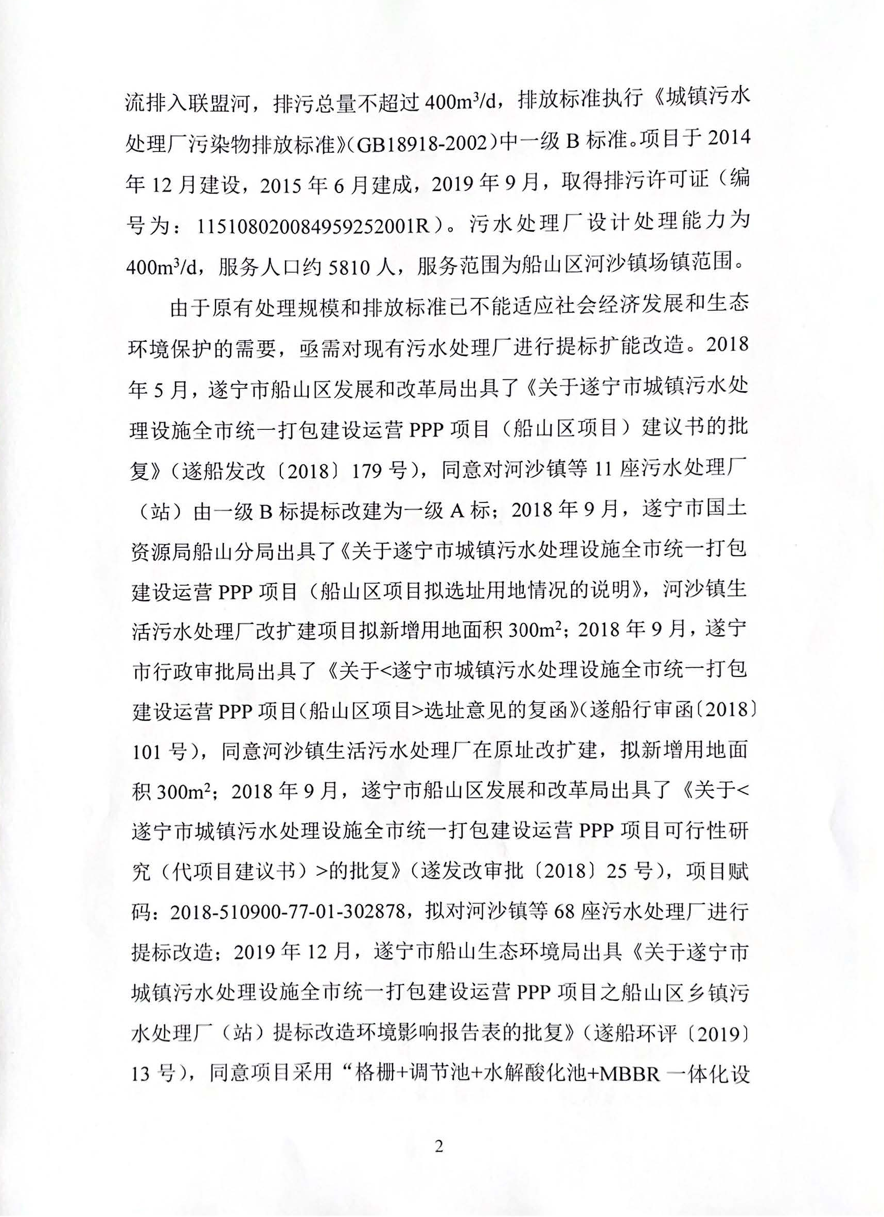 《遂宁市城镇污水处理设施全市统一打包建设运营PPP项目(河沙镇生活污水处理厂)入河排污口扩大设置论证报告》的批复