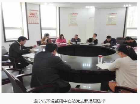 换届选举结束后,伍启良书记组织全体党员集中学习了《中共遂宁市委宣传部 中共遂宁市委组织部 中共遂宁市网络安全和信息化领导小组办公室转发 <关于规范党员干部网络行为的意见> 的通知》和《中共遂宁市委办公室关于深刻汲取张家口市及有关县扶贫领域突出问题教训强化脱贫攻坚纪律保障的通知》,会议要求党员同志要加强学习领悟,提高政治站位、增强大局观念,立足环境监测工作,为遂宁环保事业贡献力量。