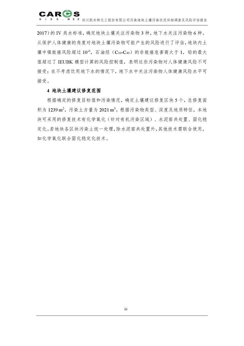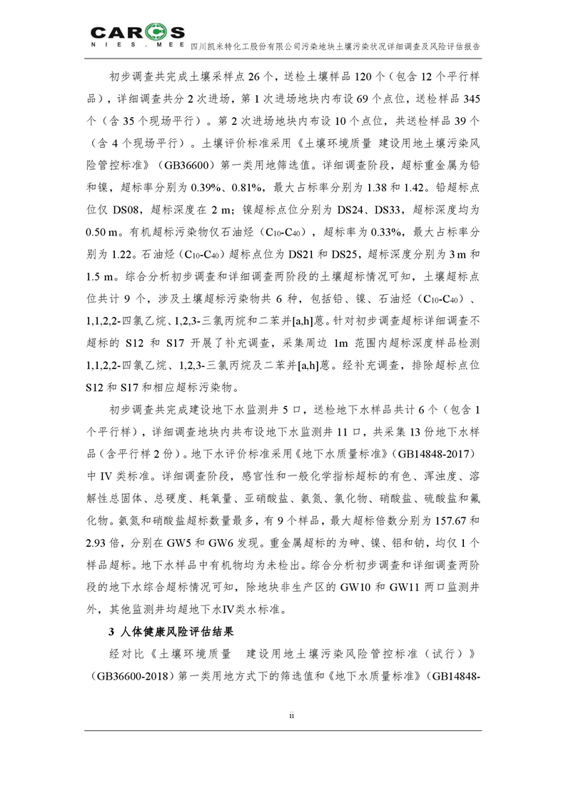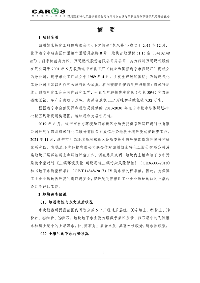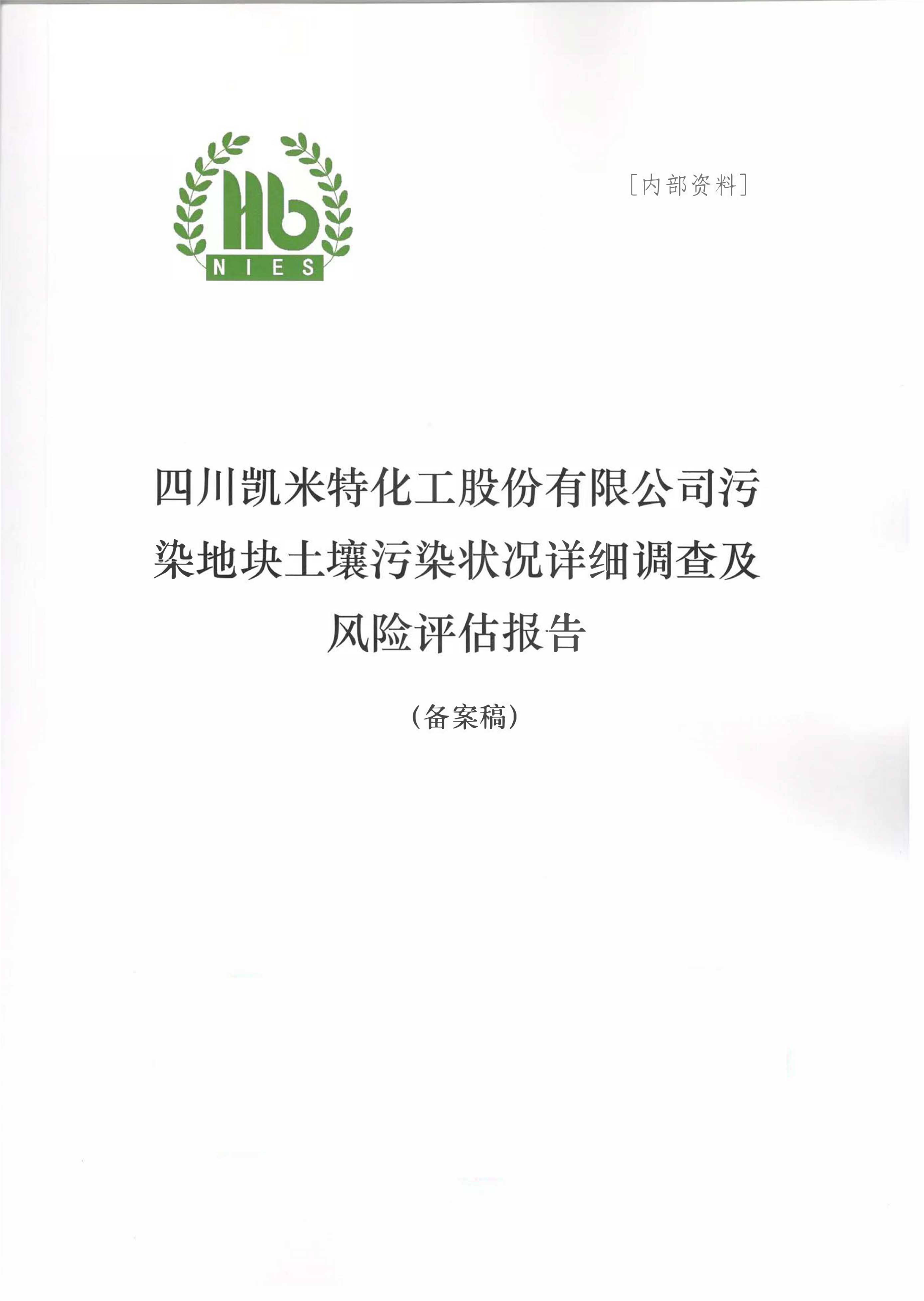 四川凯米特化工股份有限公司污染地块土壤污染状况详细调查及风险评估报告(备案稿)