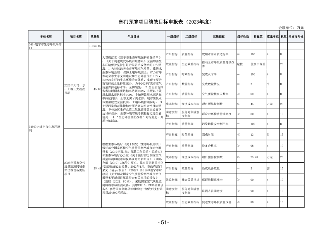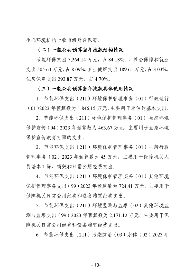 (密码:snssthjj)市生态环境局部门整体支出绩效目标申报表(2023年).rar